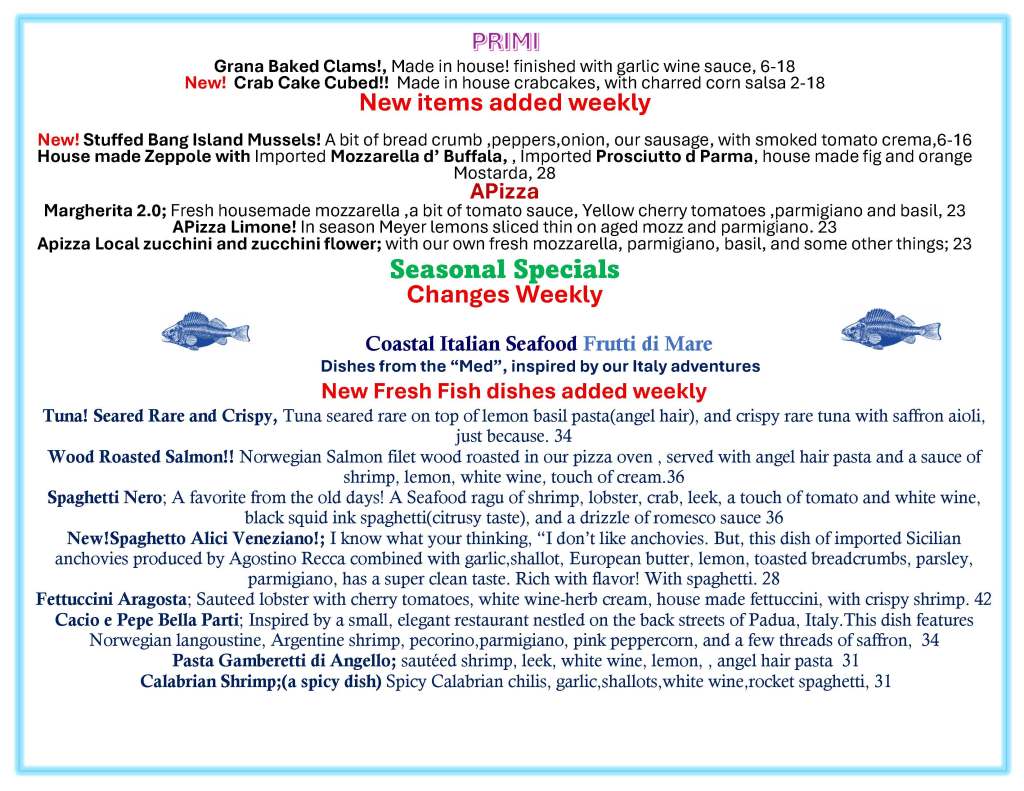 Our Menus This menu May change due to availability, seasonality, and the chef’s whim Share this: Click to share on X (Opens in new window) X Click to share on Facebook (Opens in new window) Facebook Like Loading...